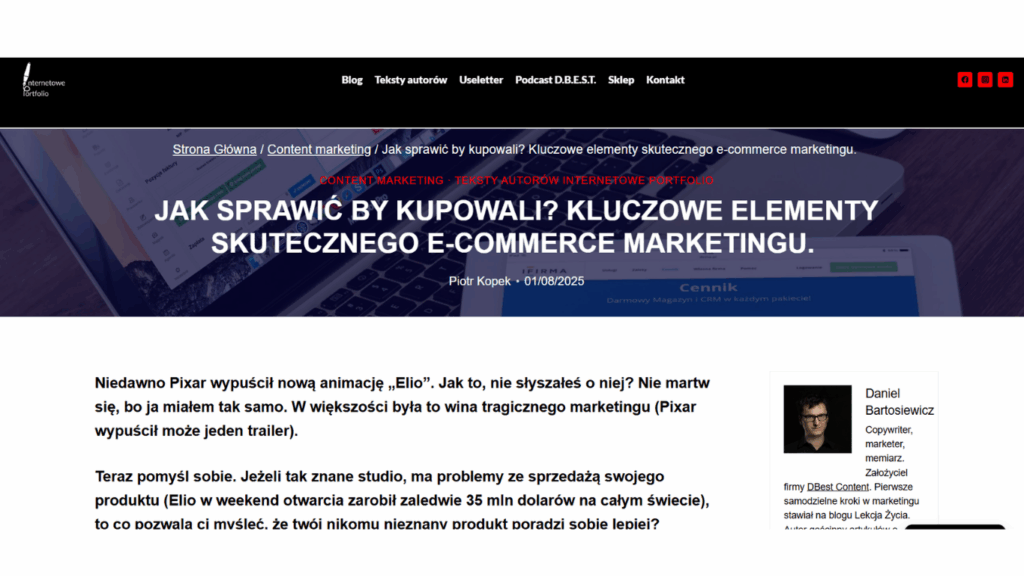 Artykuł o e-commerce marketingu na stronę internetoweportfolio.pl