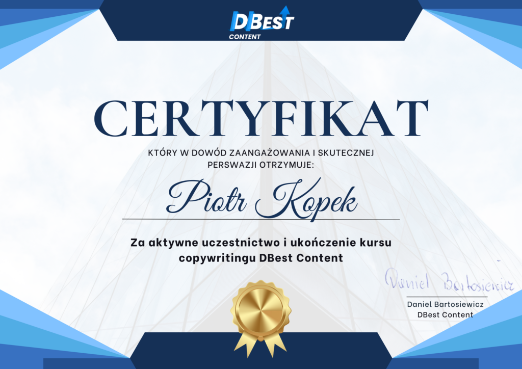 Oprócz tekstów, mam też przeszkolenie copywritingowe z kursu